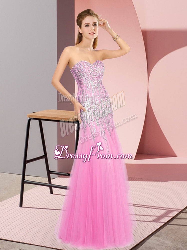 Neckline : SweetheartShown Color : Rose Pink Silhouette : Column/SheathSleeve Length : sleevelessHemline : floor lengthBack Detail : ZipperFabric : TulleEmbellishment : BeadingOccasion : Prom,PartySeason : Spring,Summer,Fall,Winter