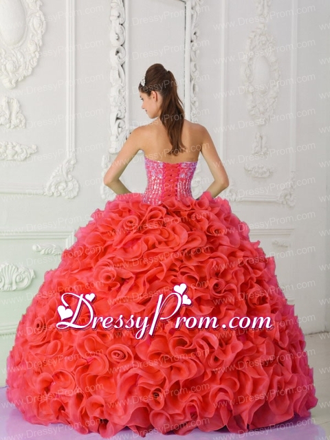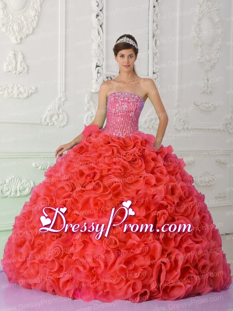 Neckline : StraplessShown Color : Red,Coral RedSilhouette : Ball GownsSleeve Length : sleevelessHemline : floor lengthBack Detail : Lace upFabric : OrganzaEmbellishment : Beading,RufflesOccasion : Prom,Military Ball,Sweet 16,QuinceaneraSeason : Spring,Summer,Fall,Winter
