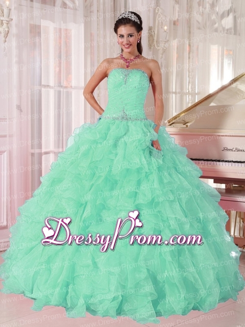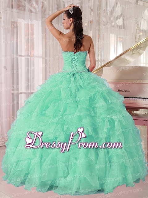 Neckline : StraplessShown Color : Blue,Aqua BlueSilhouette : Ball GownsSleeve Length : sleevelessHemline : floor lengthBack Detail : Lace upFabric : OrganzaEmbellishment : Beading,RuchingOccasion : Prom,Military Ball,Sweet 16,QuinceaneraSeason : Spring,Summer,Fall,Winter