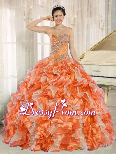 Neckline : SweetheartShown Color : Multi-colorSilhouette : Ball GownsSleeve Length : sleevelessHemline : floor lengthBack Detail : Lace upFabric : OrganzaEmbellishment : Beading,RufflesOccasion : Prom,Military Ball,Sweet 16,QuinceaneraSeason : Spring,Summer,Fall,Winter