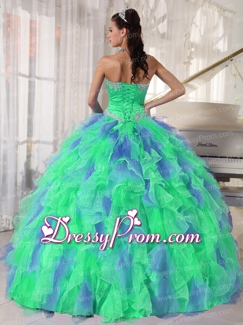Neckline : SweetheartSilhouette : Ball GownsSleeve Length : sleevelessHemline : floor lengthBack Detail : Lace upFabric : OrganzaEmbellishment : Beading,RufflesOccasion : Prom,Military Ball,Sweet 16,QuinceaneraSeason : Spring,Summer,Fall,Winter