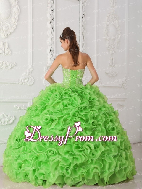 Organza Spring Green Ball Gown Strapless Perfect Quinceanera Dress with Beading
