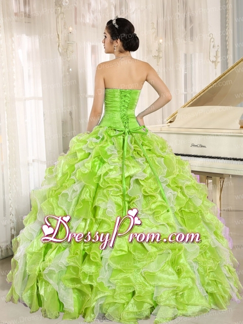 Neckline : SweetheartShown Color : Green,Spring GreenSilhouette : Ball GownsSleeve Length : sleevelessHemline : floor lengthBack Detail : Lace upFabric : OrganzaEmbellishment : Beading,RufflesOccasion : Prom,Military Ball,Sweet 16,QuinceaneraSeason : Spring,Summer,Fall,Winter