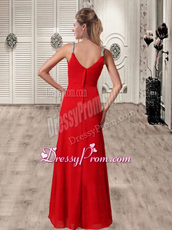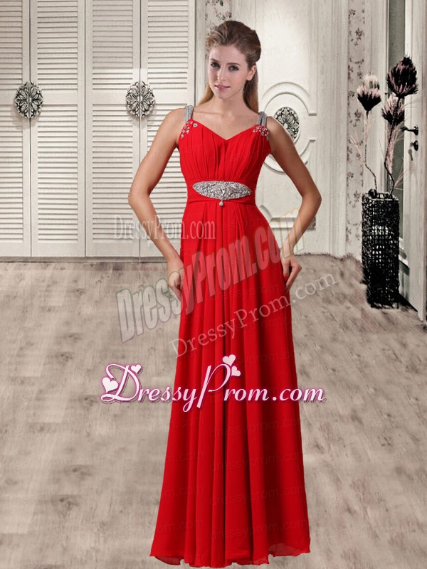 Neckline : StrapsShown Color : RedSilhouette : EmpireSleeve Length : sleevelessHemline : floor lengthBack Detail : ZipperFabric : ChiffonEmbellishment : BeadingOccasion : Prom,Formal Evening,Military Ball,PageantSeason : Spring,Summer,Fall,Winter