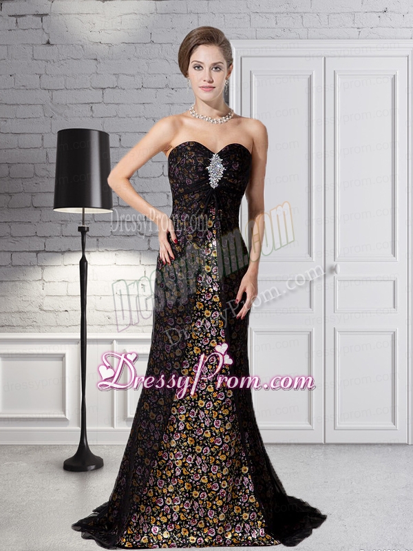 Neckline : SweetheartShown Color : BlackSilhouette : Column/SheathSleeve Length : sleevelessHemline : with trainBack Detail : ZipperFabric : ChiffonEmbellishment : BeadingOccasion : Prom,Formal Evening,GraduationSeason : Spring,Summer,Fall,Winter