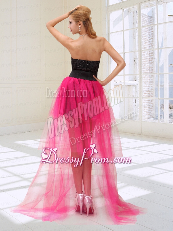 Neckline : SweetheartShown Color : Black,Hot PinkSilhouette : Column/SheathSleeve Length : sleevelessHemline : high lowBack Detail : ZipperFabric : Tulle,SequinedEmbellishment : Beading,SequinsOccasion : Prom,Party,Holiday,Birthday PartySeason : Spring,Summer,Fall