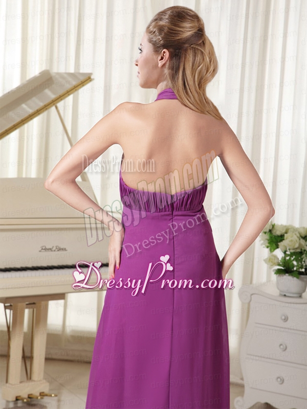 Neckline : Halter topShown Color : PurpleSilhouette : Column/SheathSleeve Length : sleevelessHemline : floor lengthBack Detail : ZipperFabric : ChiffonEmbellishment : Beading,RuchingOccasion : Prom,Formal Evening,Graduation,Military Ball,HolidaySeason : Spring,Summer,Fall,Winter