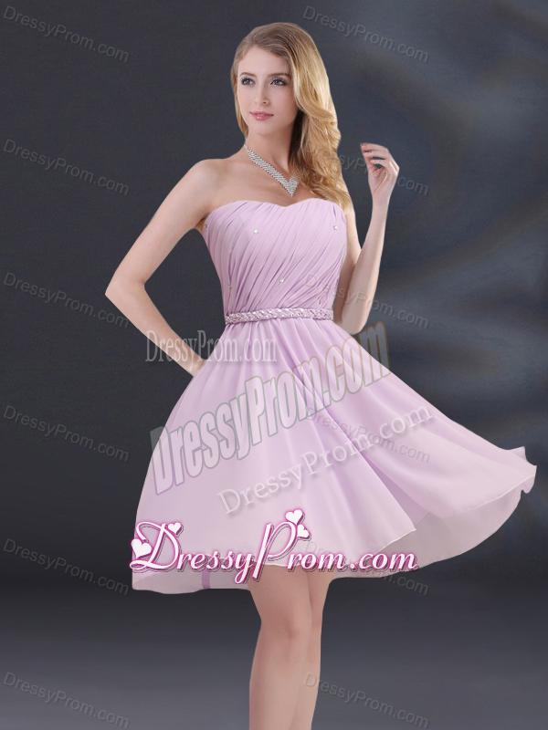 Neckline : V-neckShown Color : LilacSilhouette : A-lineSleeve Length : sleevelessHemline : mini lengthBack Detail : Lace upFabric : ChiffonEmbellishment : Beading,Ruching,Hand Made FlowerOccasion : Prom,Party,Cocktail,Homecoming,Graduation,Sweet 16,QuinceaneraSeason : Spring,Summer,Fall