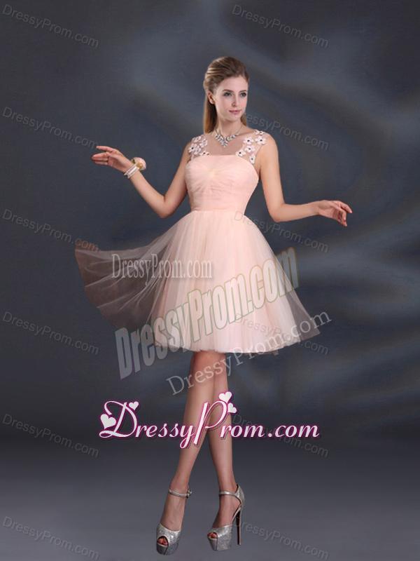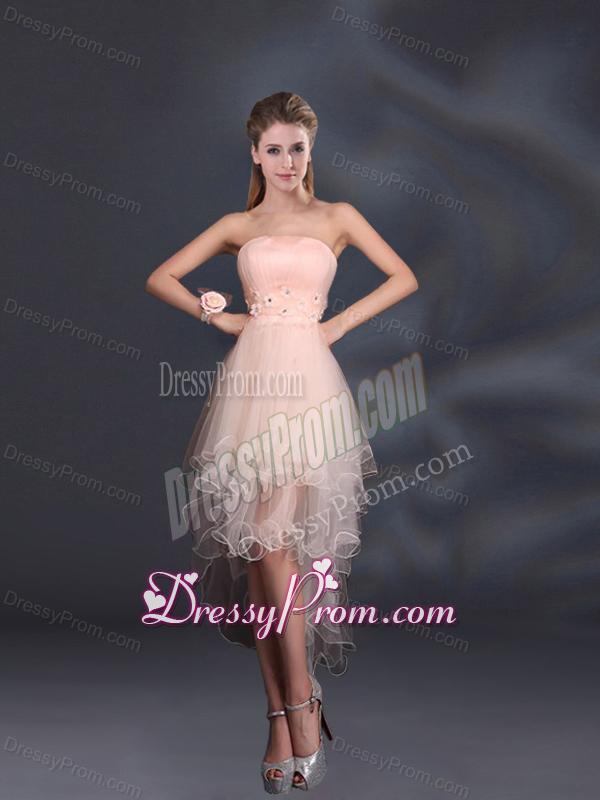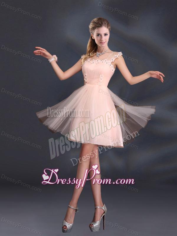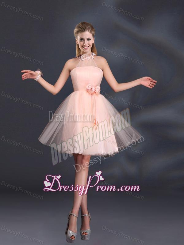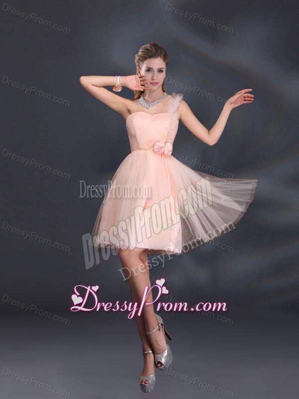 Neckline : One shoulderShown Color : Baby PinkSilhouette : A-lineSleeve Length : sleevelessHemline : mini lengthBack Detail : Lace upFabric : Organza,TulleEmbellishment : Appliques,Belt,Hand Made FlowerOccasion : Prom,Party,Cocktail,Homecoming,Graduation,Sweet 16,QuinceaneraSeason : Spring,Summer,Fall