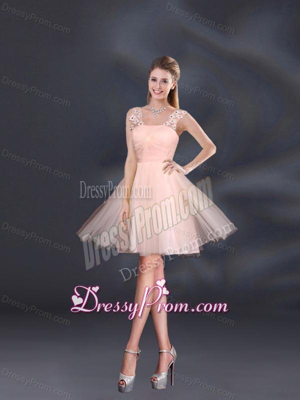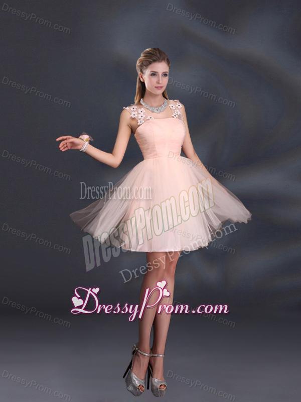 Straps Appliques Bridesmaid Dama Dresses in Baby Pink