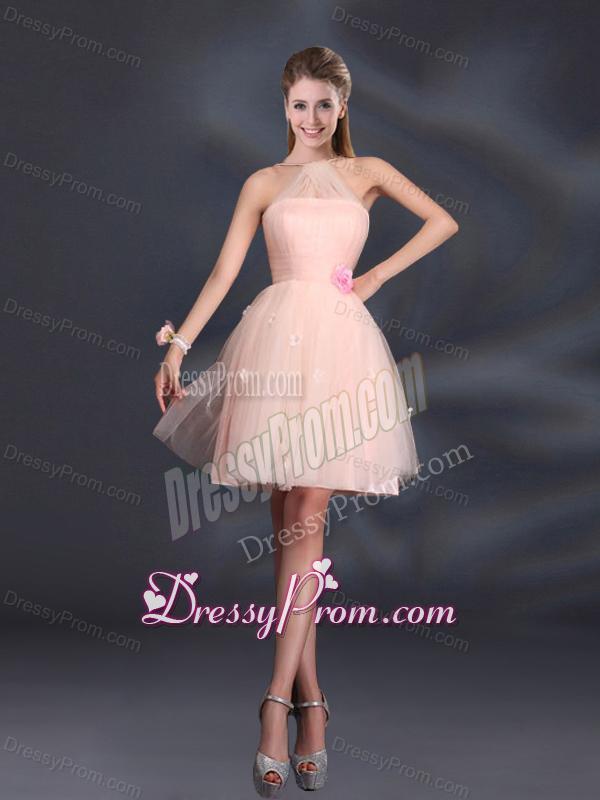 Neckline : Halter topShown Color : Baby PinkSilhouette : A-lineSleeve Length : sleevelessHemline : mini lengthBack Detail : Lace upFabric : TulleEmbellishment : AppliquesOccasion : Prom,Party,Cocktail,Homecoming,Graduation,Sweet 16,QuinceaneraSeason : Spring,Summer,Fall