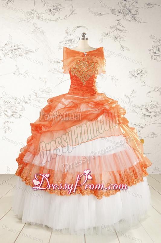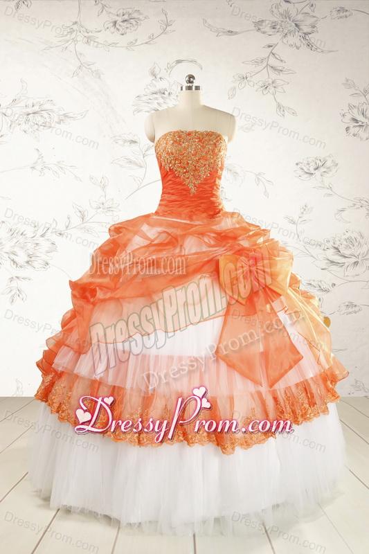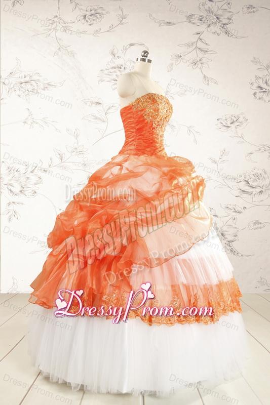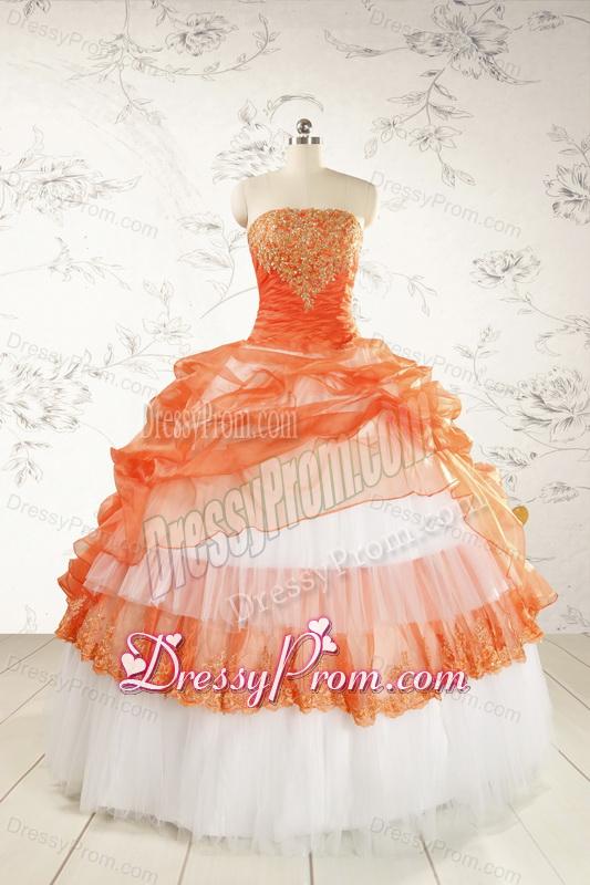 Neckline : StraplessShown Color : White,OrangeSilhouette : Ball GownsSleeve Length : sleevelessHemline : floor lengthBack Detail : Lace upFabric : OrganzaEmbellishment : Beading,AppliquesOccasion : Military Ball,Sweet 16,QuinceaneraSeason : Spring,Summer,Fall,Winter