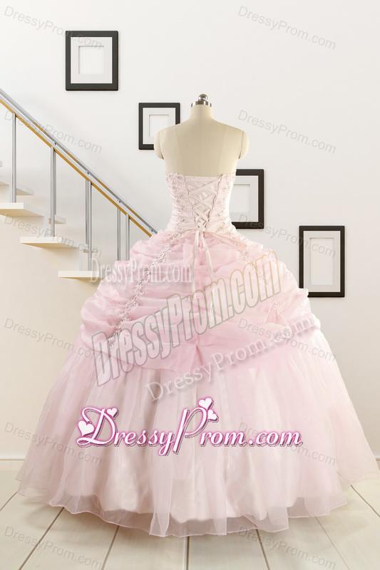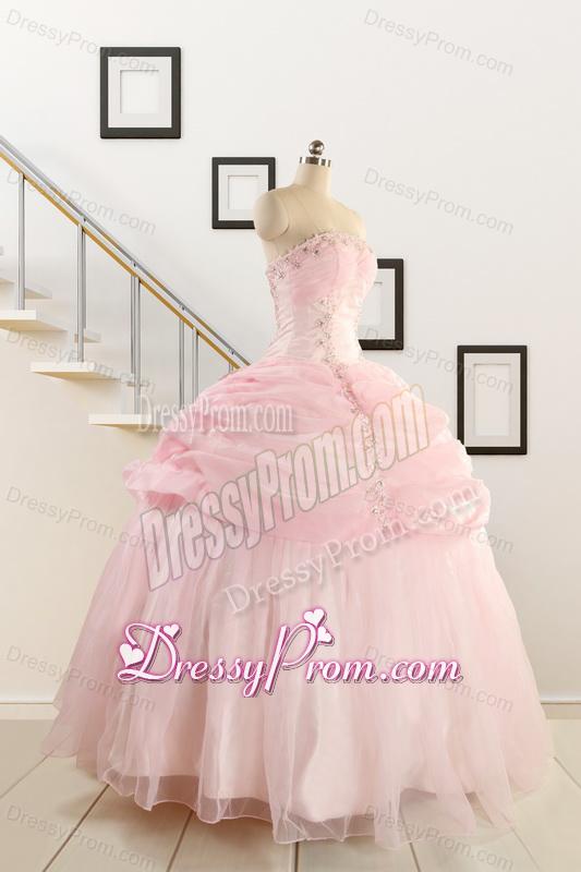 Neckline : StraplessShown Color : Baby PinkSilhouette : Ball GownsSleeve Length : sleevelessHemline : floor lengthBack Detail : Lace upFabric : OrganzaEmbellishment : Beading,Pick UpsOccasion : Military Ball,Sweet 16,QuinceaneraSeason : Spring,Summer,Fall,Winter