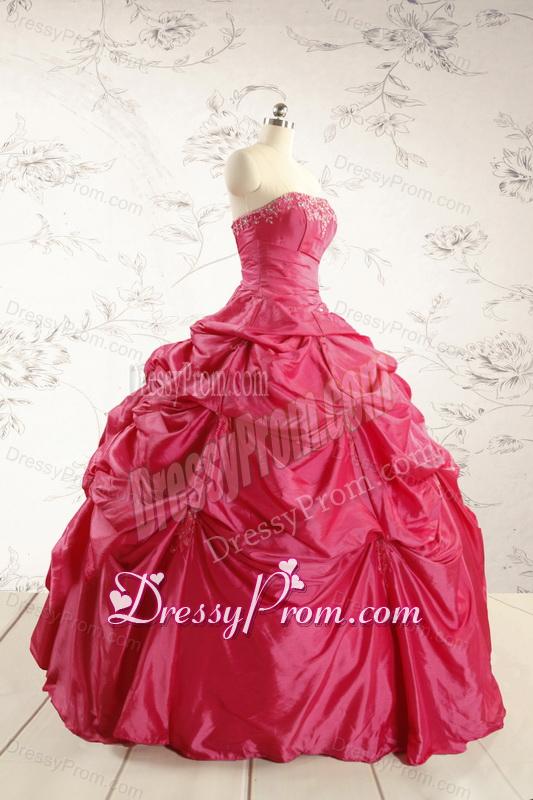 2015 Cheap Appliques Quinceanera Dresses in Hot Pink