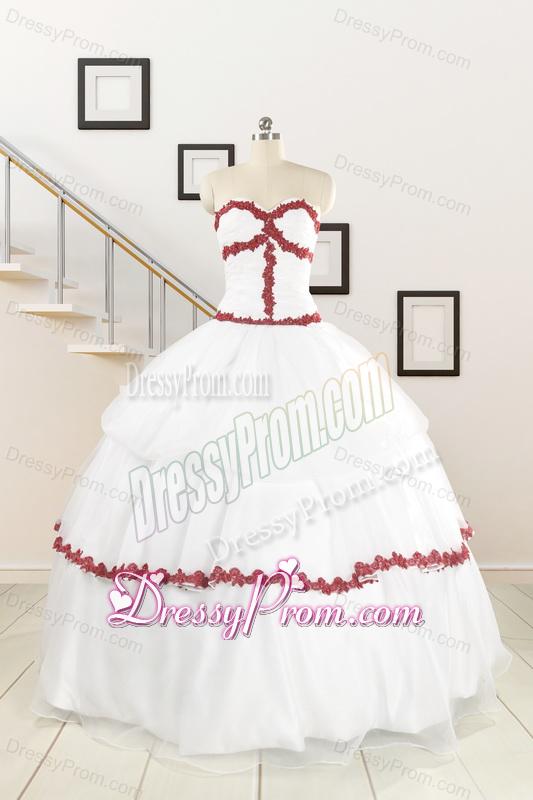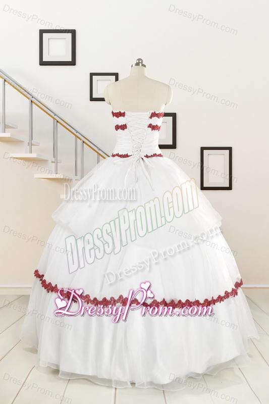 Neckline : SweetheartShown Color : White,RedSilhouette : Ball GownsSleeve Length : sleevelessHemline : floor lengthBack Detail : Lace upFabric : OrganzaEmbellishment : AppliquesOccasion : Military Ball,Sweet 16,QuinceaneraSeason : Spring,Summer,Fall,Winter