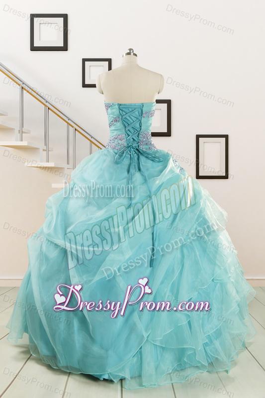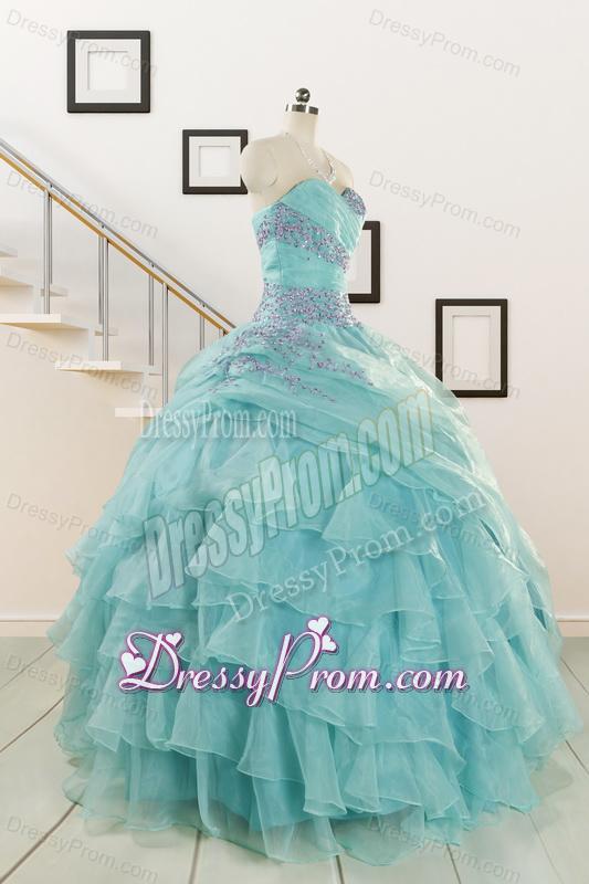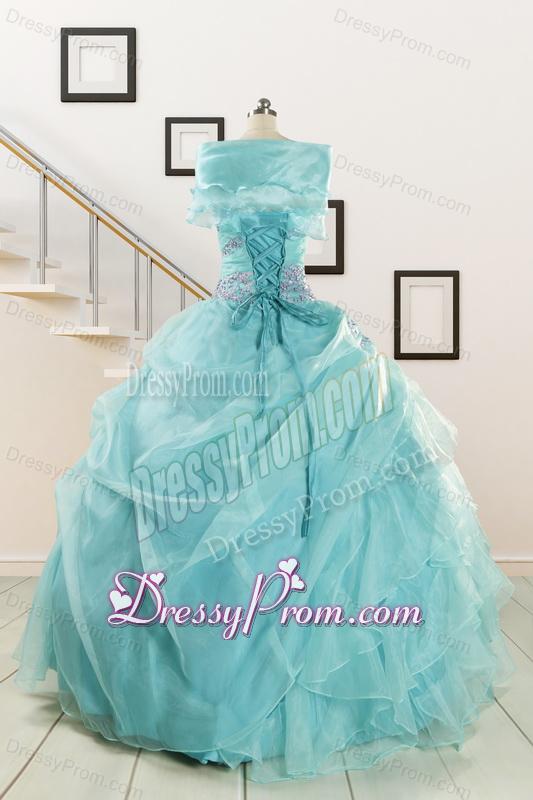 Beading and Ruffles Pretty Quinceanera Dresses in Turquoise for 2015