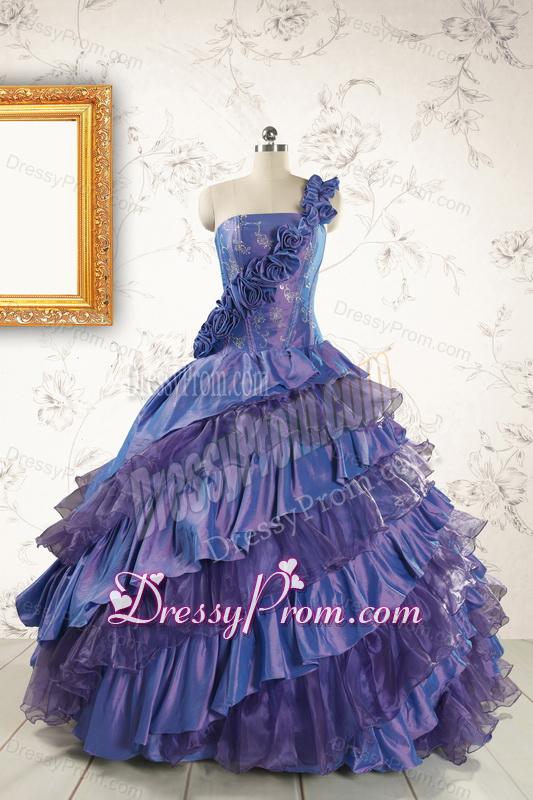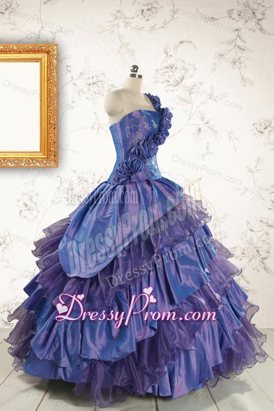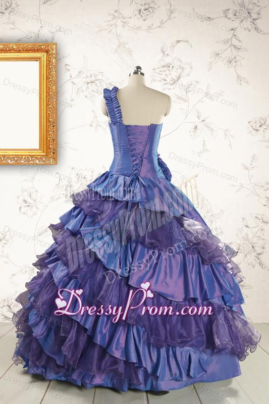 Neckline : One shoulderShown Color : PurpleSilhouette : Ball GownsSleeve Length : sleevelessHemline : floor lengthBack Detail : Lace upFabric : OrganzaEmbellishment : Ruffles,Hand Made FlowerOccasion : Military Ball,Sweet 16,QuinceaneraSeason : Spring,Summer,Fall,Winter