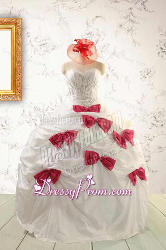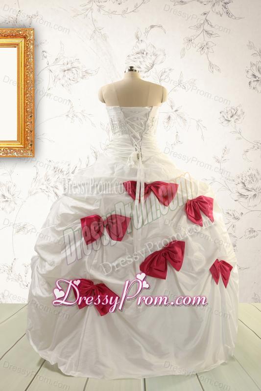 Cheap White Quinceanera Dresses with Beading and Bowknots For 2015
