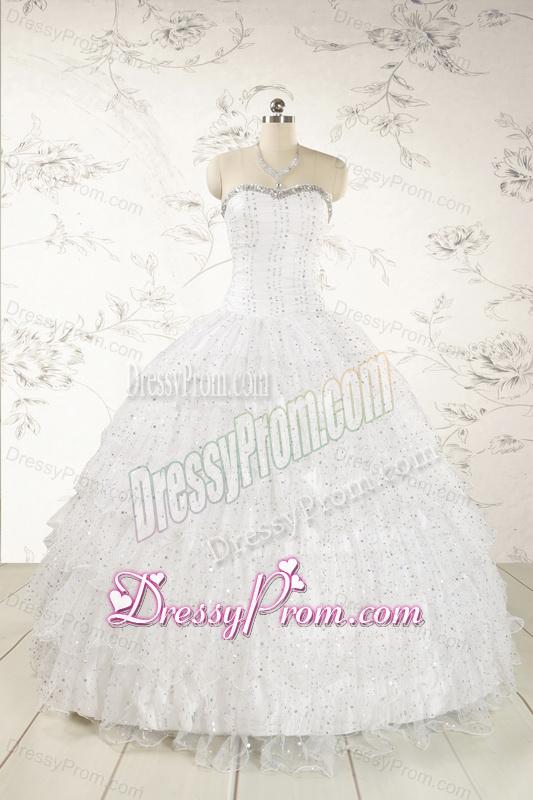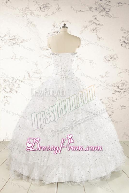 Neckline : SweetheartShown Color : WhiteSilhouette : Ball GownsSleeve Length : sleevelessHemline : floor lengthBack Detail : Lace upFabric : OrganzaEmbellishment : RufflesOccasion : Military Ball,Sweet 16,QuinceaneraSeason : Spring,Summer,Fall,Winter