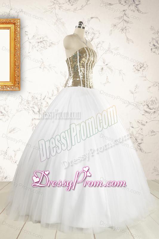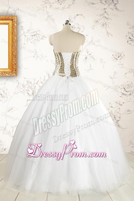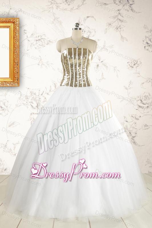 Neckline : StraplessShown Color : WhiteSilhouette : Ball GownsSleeve Length : sleevelessHemline : floor lengthBack Detail : Lace upFabric : TulleEmbellishment : SequinsOccasion : Military Ball,Sweet 16,QuinceaneraSeason : Spring,Summer,Fall,Winter