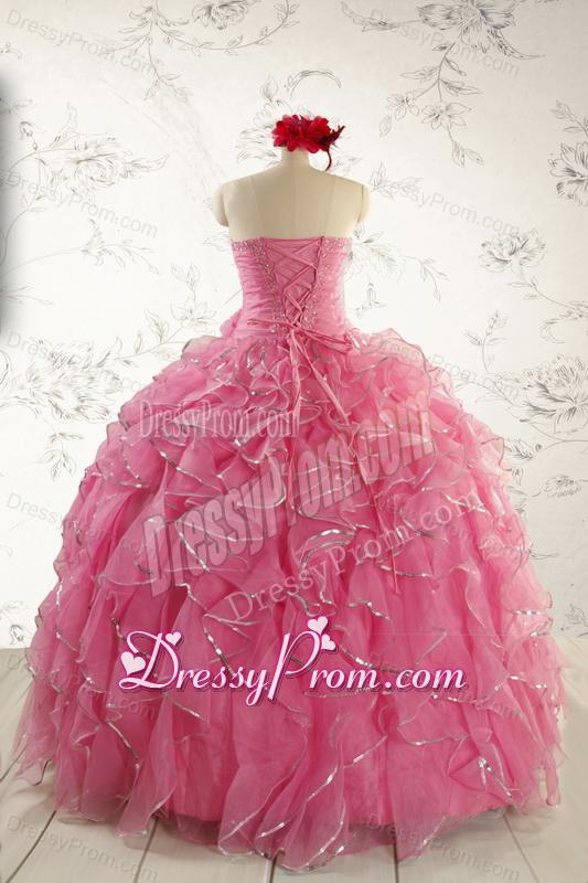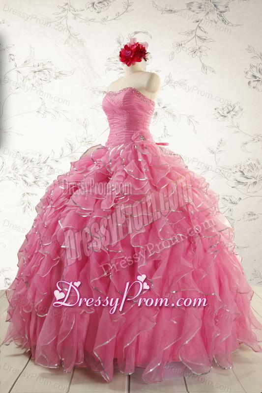2015 Pretty Beading Quinceanera Dresses in Rose Pink