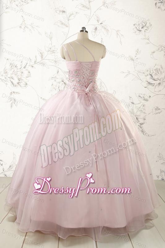 Neckline : One shoulderShown Color : Pink Silhouette : Ball GownsSleeve Length : sleevelessHemline : floor lengthBack Detail : Lace upFabric : OrganzaEmbellishment : BeadingOccasion : Military Ball,Sweet 16,QuinceaneraSeason : Spring,Summer,Fall,Winter