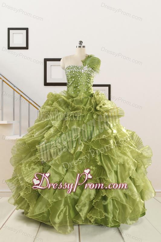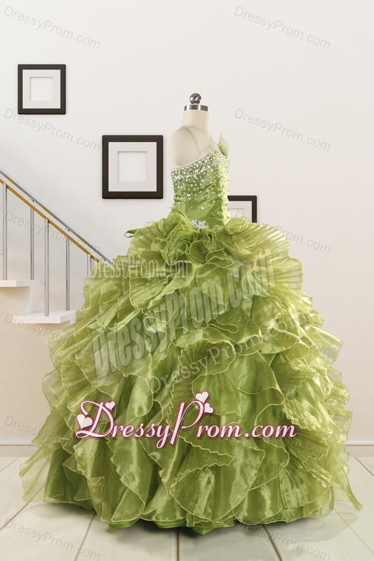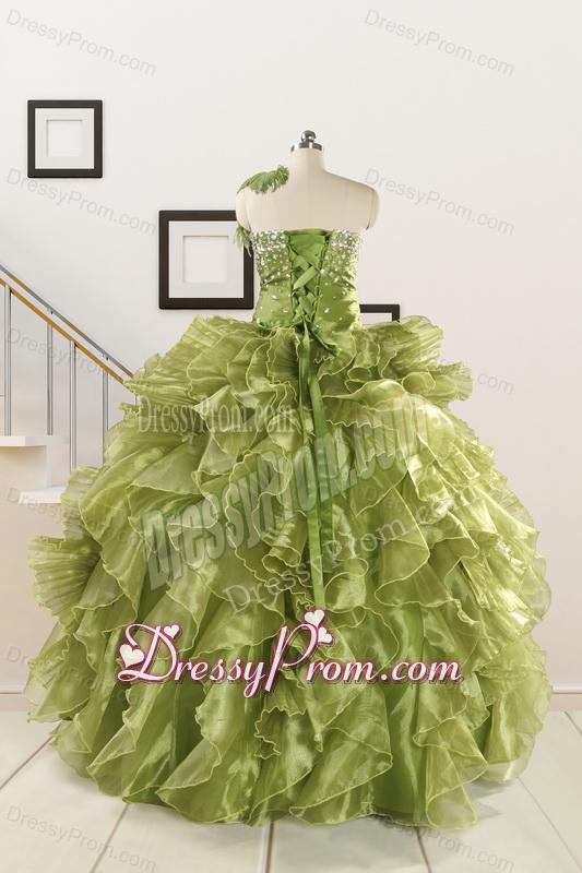Neckline : StraplessShown Color : Olive GreenSilhouette : Ball GownsSleeve Length : sleevelessHemline : floor lengthBack Detail : Lace upFabric : OrganzaEmbellishment : Beading,RufflesOccasion : Military Ball,Sweet 16,QuinceaneraSeason : Spring,Summer,Fall,Winter