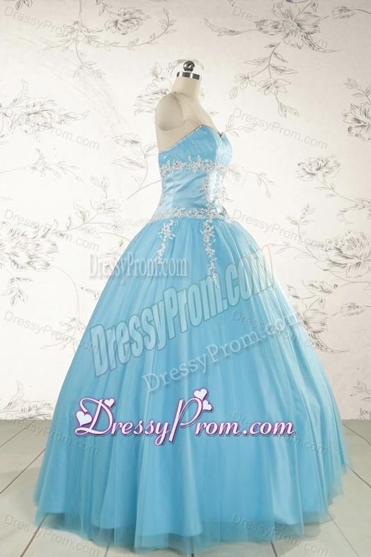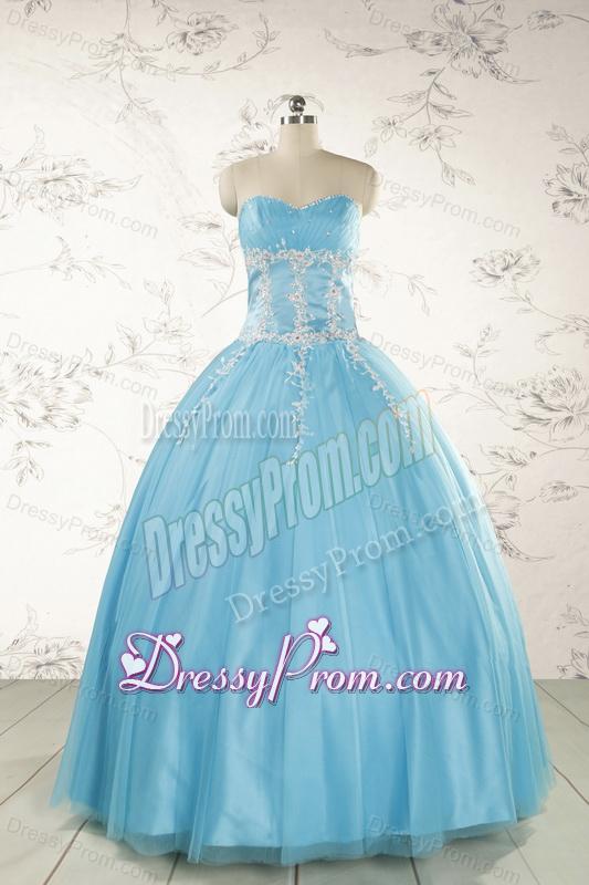 Neckline : SweetheartShown Color : Aqua BlueSilhouette : Ball GownsSleeve Length : sleevelessHemline : floor lengthBack Detail : Lace upFabric : TulleEmbellishment : Beading,AppliquesOccasion : Military Ball,Sweet 16,QuinceaneraSeason : Spring,Summer,Fall,Winter
