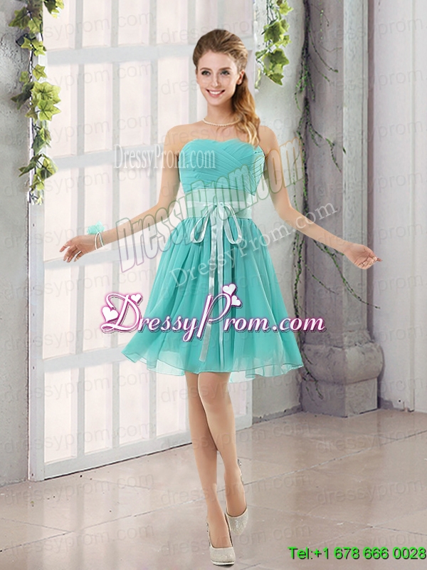 2015 A Line Ruching Lace Up Bridesmaid Dress in Aqua Blue