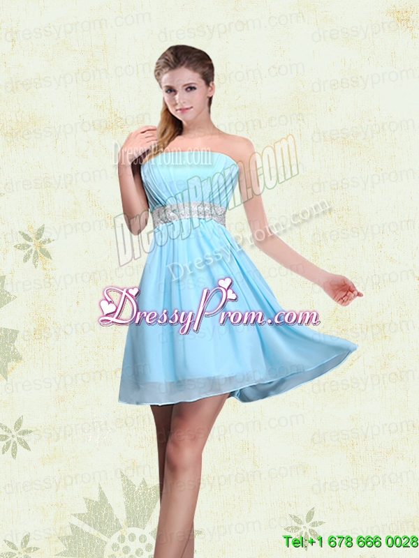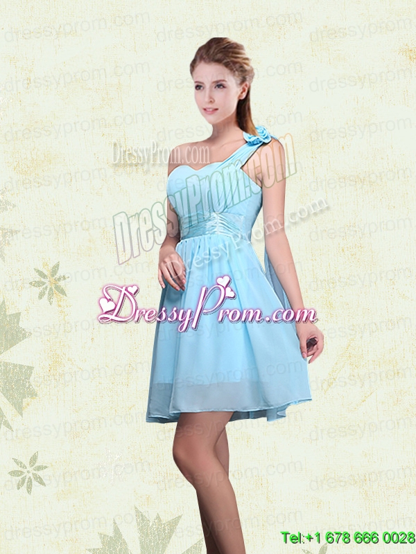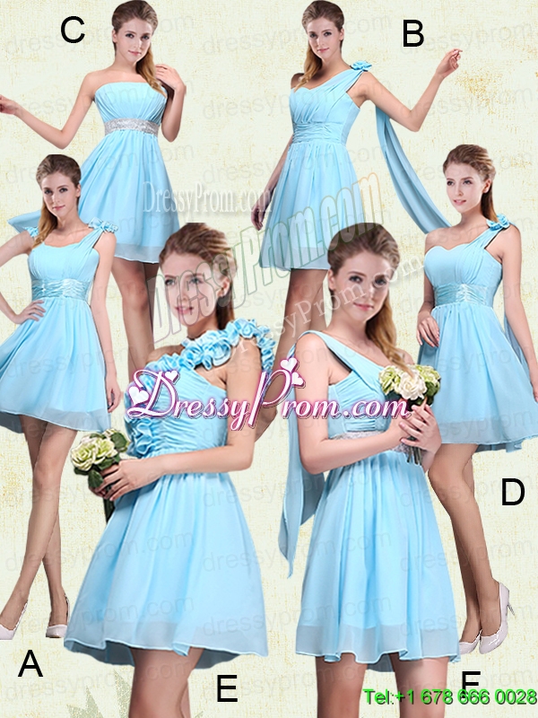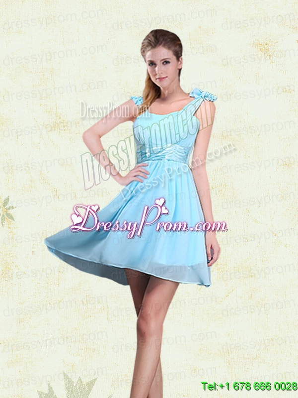 2015 Ruching Chiffon Aqua Blue Bridesmaid Dresses with Mini Length