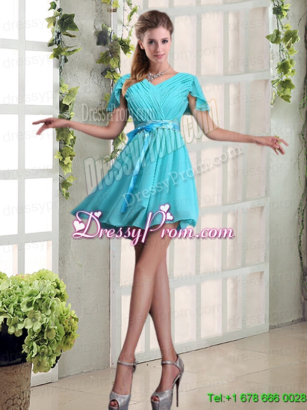 Neckline : Sweetheart Shown Color : Aqua Blue Silhouette : A-line Sleeve Length : sleeveless Hemline : mini length Back Detail : Lace up Fabric : Chiffon Embellishment : Ruching,Belt,Hand Made Flower Occasion : Prom,Party,Homecoming,Wedding Party Season : Spring,Summer,Fall,Winter
