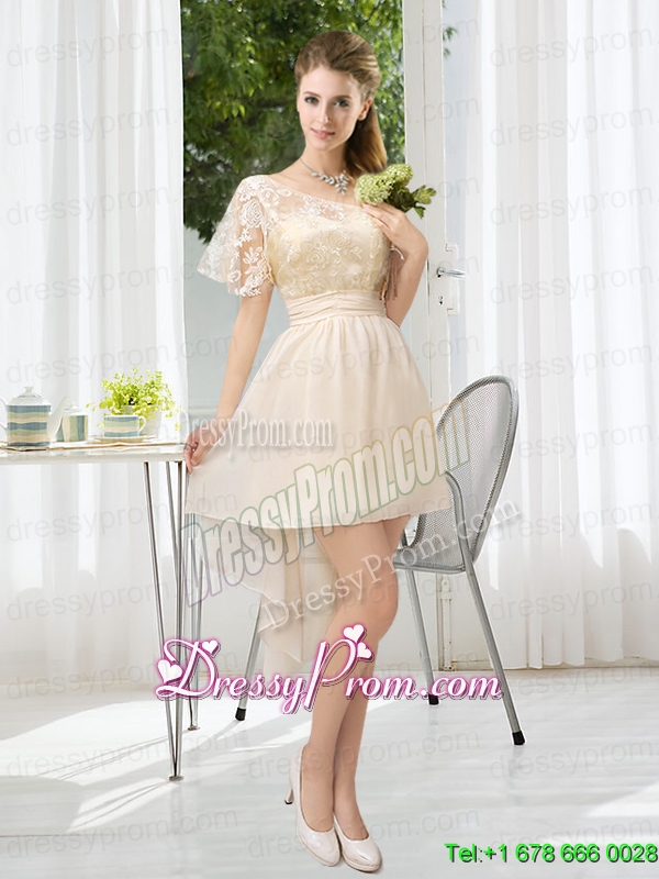Neckline : StraplessShown Color : ChampagneSilhouette : A-lineSleeve Length : sleevelessHemline : mini lengthBack Detail : Lace upFabric : ChiffonEmbellishment : Appliques,BeltOccasion : Prom,Party,Homecoming,Wedding PartySeason : Spring,Summer,Fall,Winter
