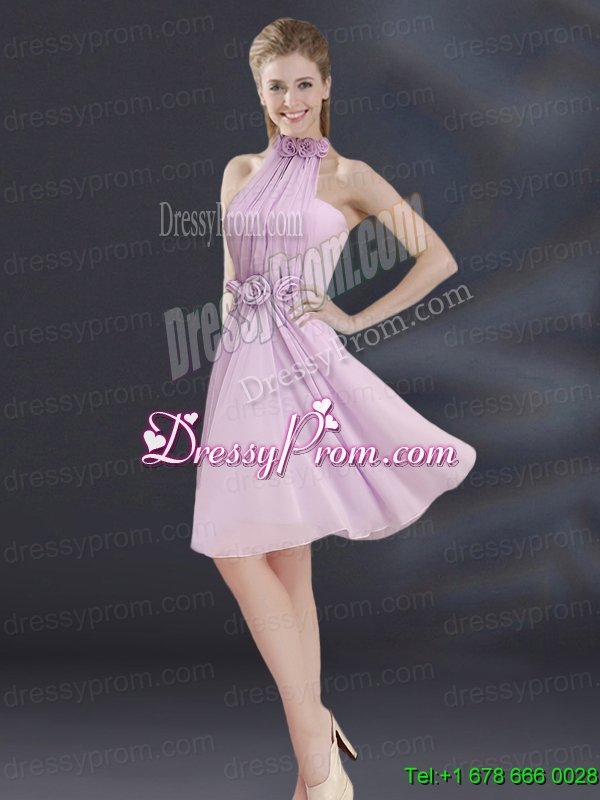 Neckline : Off the shoulder Shown Color : Lilac Silhouette : A-line Sleeve Length : sleeveless Hemline : mini length Back Detail : Lace up Fabric : Chiffon Embellishment : Beading,Ruching,Hand Made Flower Occasion : Prom,Party,Homecoming,Wedding Party Season : Spring,Summer,Fall,Winter