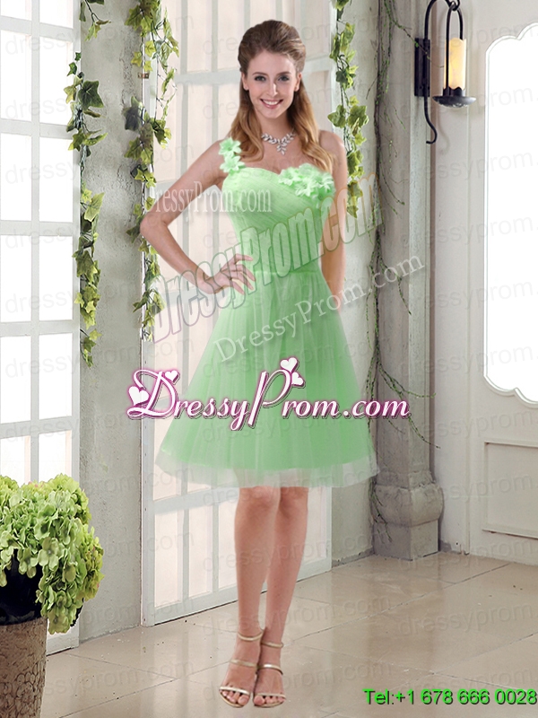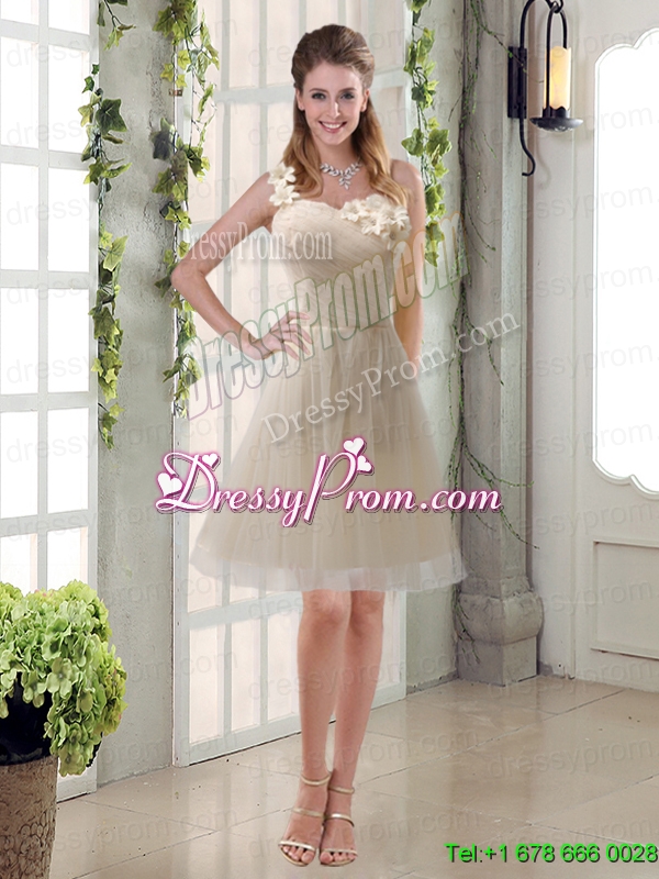 Champagne Ruched Hand Made Flowers One Shoulder 2015 Prom Dresses