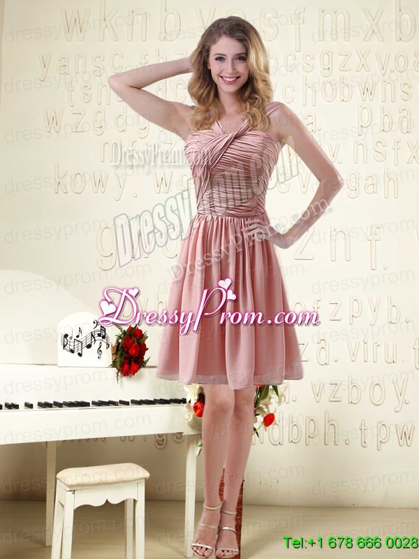 Neckline : StrapsShown Color : Pink Silhouette : EmpireSleeve Length : sleevelessHemline : mini lengthBack Detail : ZipperFabric : ChiffonEmbellishment : RuchingOccasion : Prom,Party,Homecoming,Wedding PartySeason : Spring,Summer,Fall,Winter