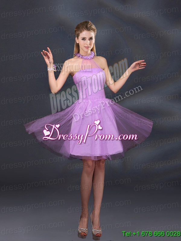 Neckline : Halter topShown Color : LilacSilhouette : A-lineSleeve Length : sleevelessHemline : mini lengthBack Detail : Lace upFabric : TulleEmbellishment : AppliquesOccasion : Prom,Party,Homecoming,Wedding PartySeason : Spring,Summer,Fall,Winter