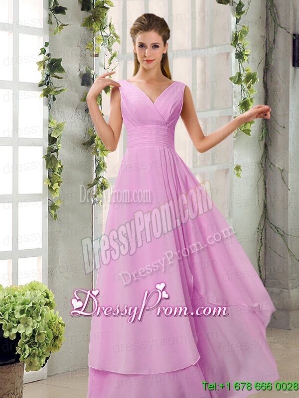 Neckline : V-neckShown Color : ChampagneSilhouette : EmpireSleeve Length : sleevelessHemline : floor lengthBack Detail : ZipperFabric : ChiffonEmbellishment : RuchingOccasion : Prom,Graduation,Wedding PartySeason : Spring,Summer,Fall,Winter