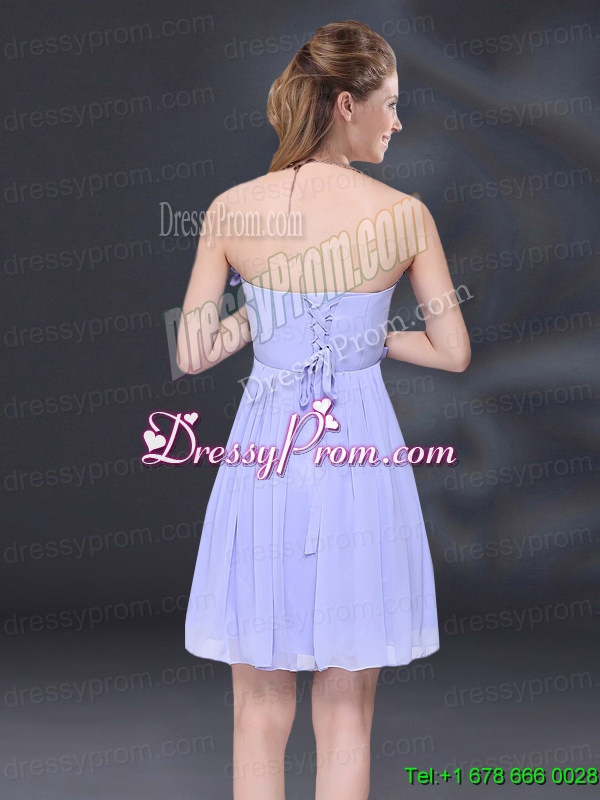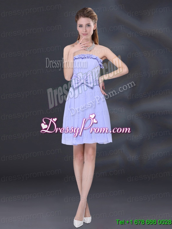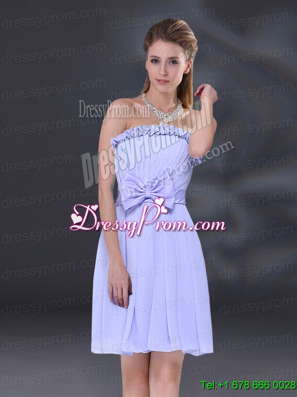 Neckline : StraplessShown Color : LavenderSilhouette : A-lineSleeve Length : sleevelessHemline : mini lengthBack Detail : Lace upFabric : ChiffonEmbellishment : BowknotOccasion : Prom,Party,Homecoming,Wedding PartySeason : Spring,Summer,Fall,Winter