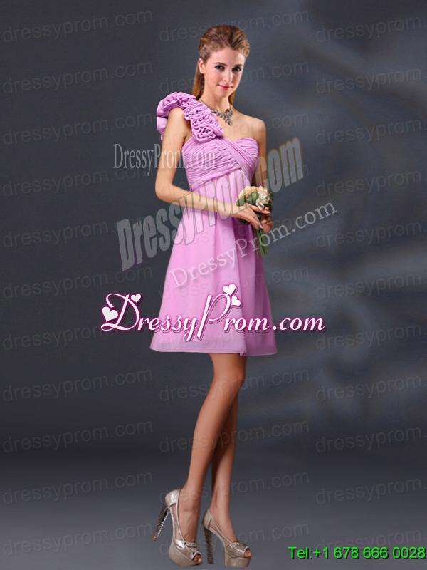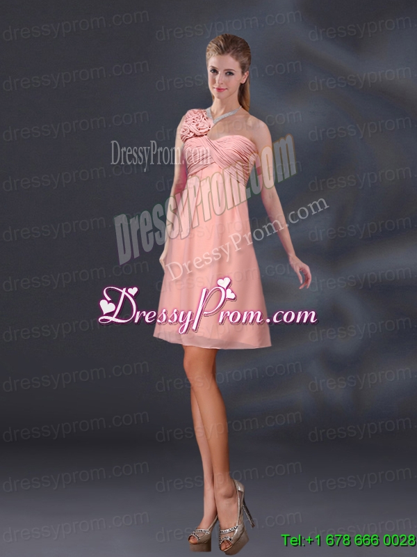 Neckline : BateauShown Color : Pink Silhouette : A-lineSleeve Length : sleevelessHemline : mini lengthBack Detail : Lace upFabric : ChiffonEmbellishment : Ruching,Hand Made FlowerOccasion : Prom,Party,Homecoming,Wedding PartySeason : Spring,Summer,Fall,Winter
