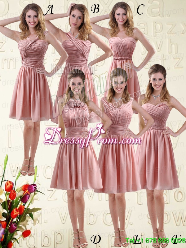 Neckline : V-neckShown Color : Pink Silhouette : EmpireSleeve Length : sleevelessHemline : mini lengthBack Detail : ZipperFabric : ChiffonEmbellishment : RuchingOccasion : Prom,Party,Homecoming,Quinceanera,Wedding PartySeason : Spring,Summer,Fall,Winter