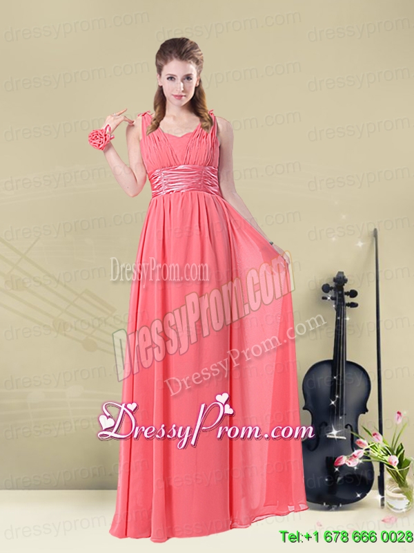 Neckline : StrapsShown Color : Watermelon RedSilhouette : Column/SheathSleeve Length : sleevelessHemline : floor lengthBack Detail : ZipperFabric : ChiffonEmbellishment : RuchingOccasion : Prom,Party,Homecoming,Quinceanera,Wedding PartySeason : Spring,Summer,Fall,Winter
