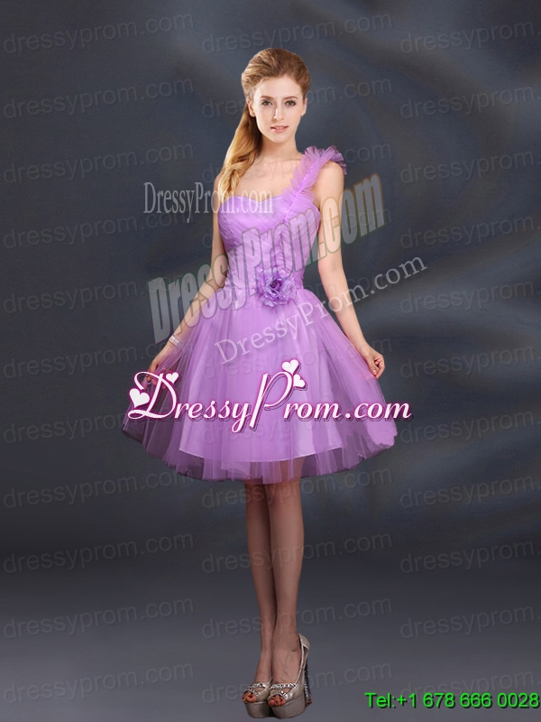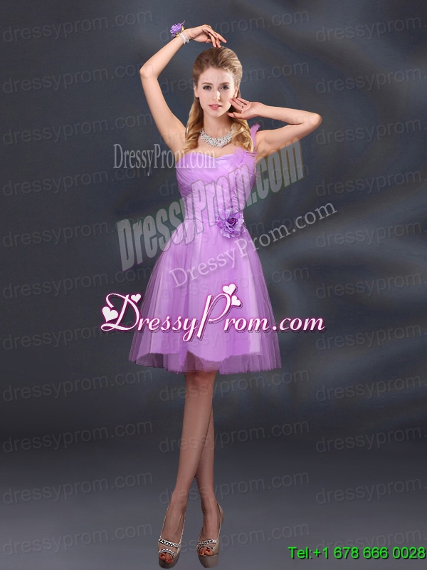 2015 Lilac Hand Made Flowers A Line One Shoulder Prom Dresses