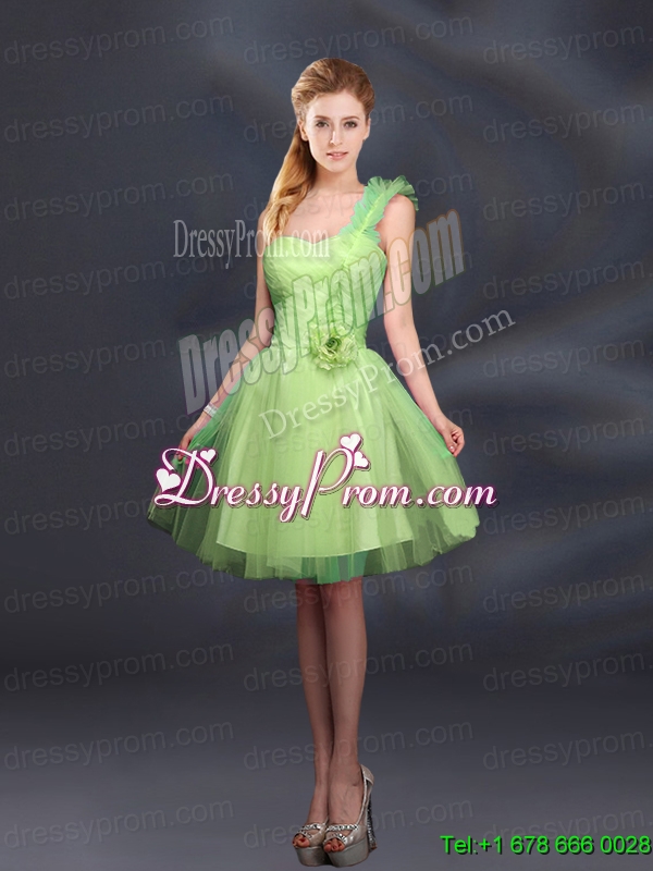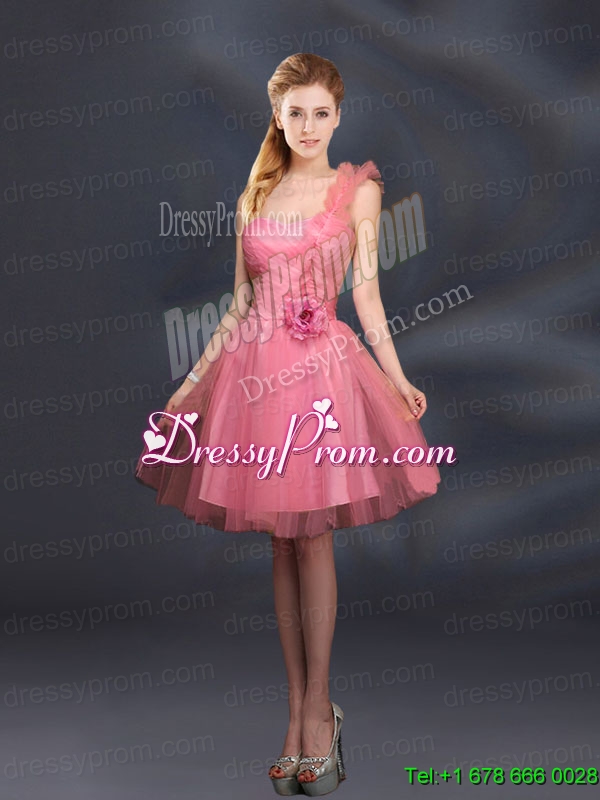 Neckline : One shoulder Shown Color : Lilac Silhouette : A-line Sleeve Length : sleeveless Hemline : mini length Back Detail : Lace up Fabric : Tulle Embellishment : Hand Made Flower Occasion : Prom,Party,Homecoming,Wedding Party Season : Spring,Summer,Fall,Winter