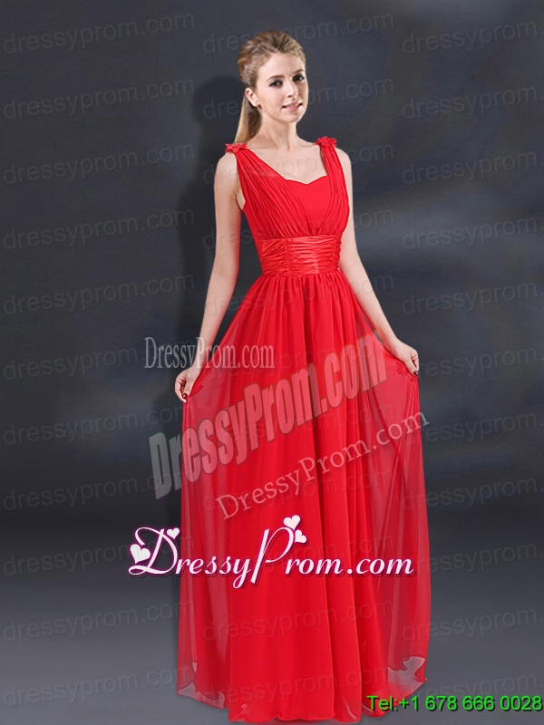 Neckline : StrapsShown Color : RedSilhouette : EmpireSleeve Length : sleevelessHemline : floor lengthBack Detail : ZipperFabric : ChiffonEmbellishment : RuchingOccasion : Prom,Party,Homecoming,Wedding PartySeason : Spring,Summer,Winter