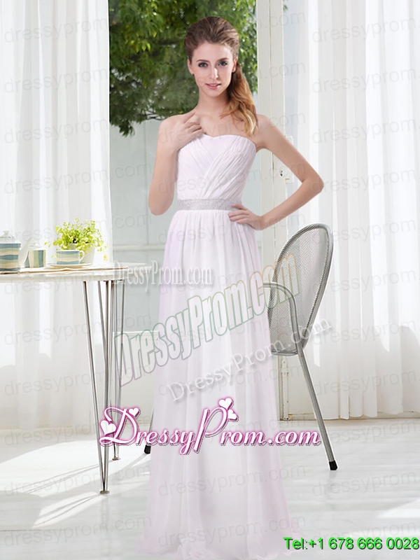 Neckline : SweetheartShown Color : WhiteSilhouette : EmpireSleeve Length : sleevelessHemline : floor lengthBack Detail : Lace upFabric : ChiffonEmbellishment : Sequins,RuchingOccasion : Prom,Graduation,Wedding PartySeason : Spring,Summer,Fall,Winter