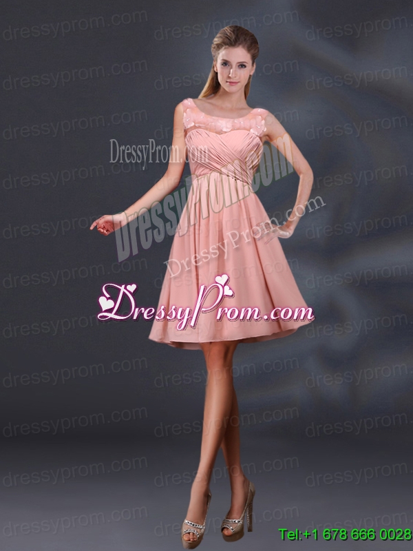 Neckline : BateauShown Color : Pink Silhouette : A-lineSleeve Length : sleevelessHemline : mini lengthBack Detail : Lace upFabric : ChiffonEmbellishment : Appliques,RuchingOccasion : Prom,Party,Homecoming,Wedding PartySeason : Spring,Summer,Fall,Winter