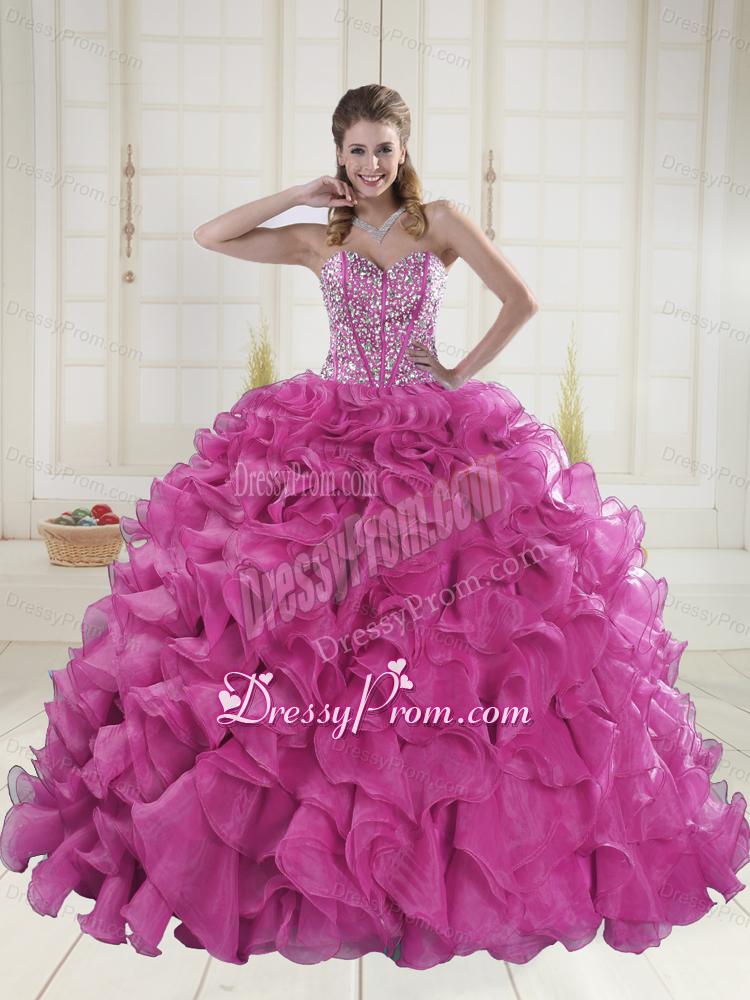Neckline : SweetheartShown Color : Hot PinkSilhouette : Ball GownsSleeve Length : sleevelessHemline : floor lengthBack Detail : Lace upFabric : OrganzaEmbellishment : Beading,RufflesOccasion : Prom,Formal Evening,Graduation,Military Ball,Sweet 16,QuinceaneraSeason : Spring,Summer,Fall,Winter