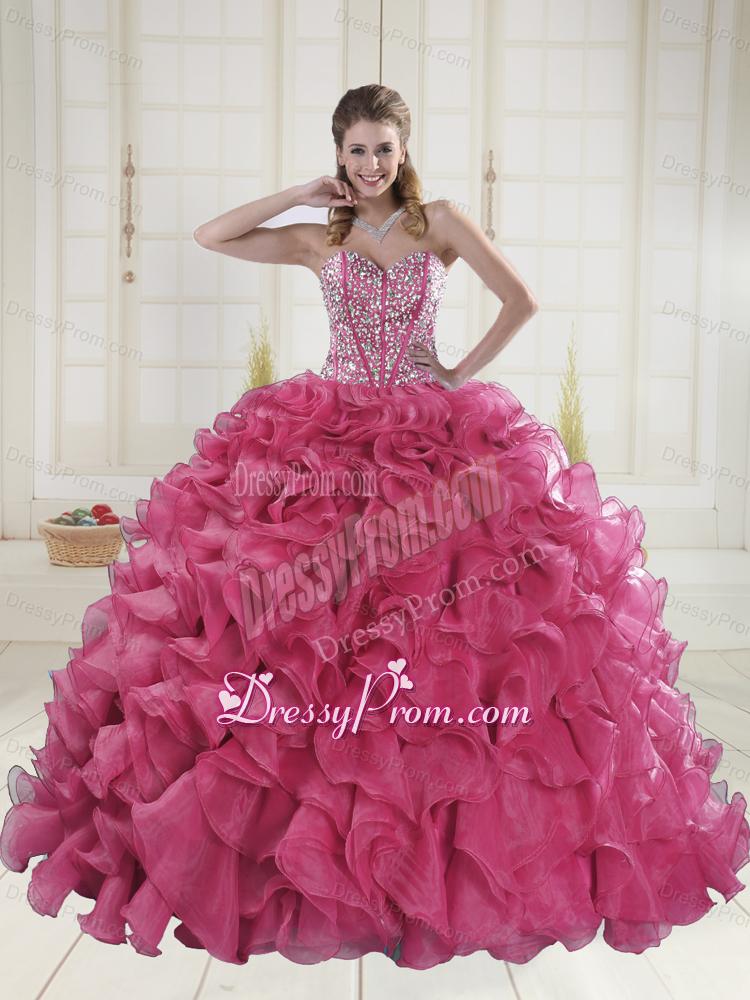 2015 Hot Sale Red Quinceanera Gowns with Beading