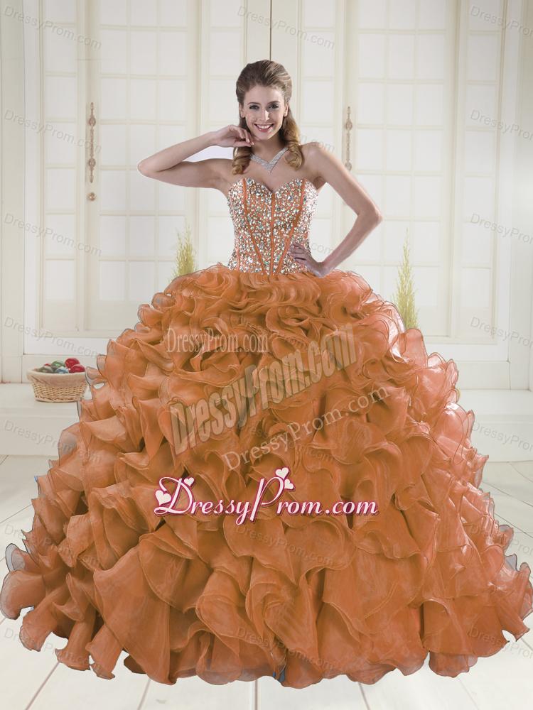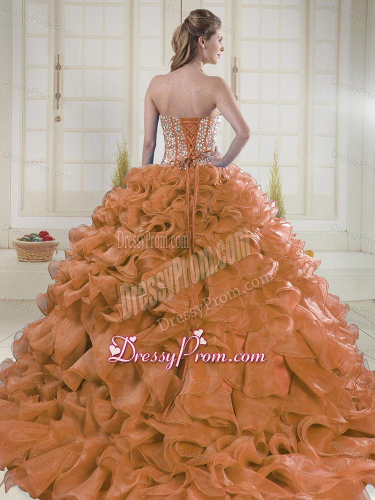 Neckline : SweetheartShown Color : Rust RedSilhouette : Ball GownsSleeve Length : sleevelessHemline : floor lengthBack Detail : Lace upFabric : OrganzaEmbellishment : Beading,RufflesOccasion : Prom,Formal Evening,Graduation,Military Ball,Sweet 16,QuinceaneraSeason : Spring,Summer,Fall,Winter
