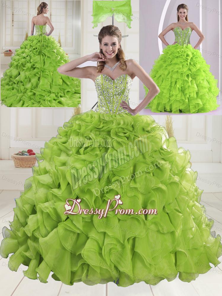 Yellow Green Sweetheart Brush Train Quinceanera Dresses
